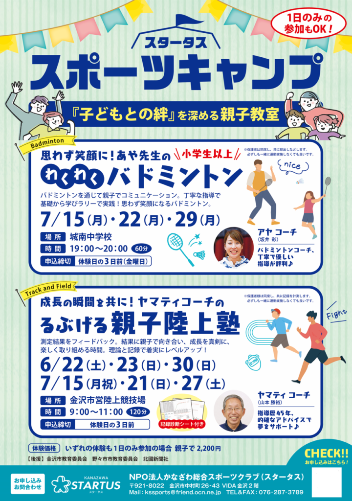 スタータススポーツキャンプ「子どもとの絆」を深める親子教室