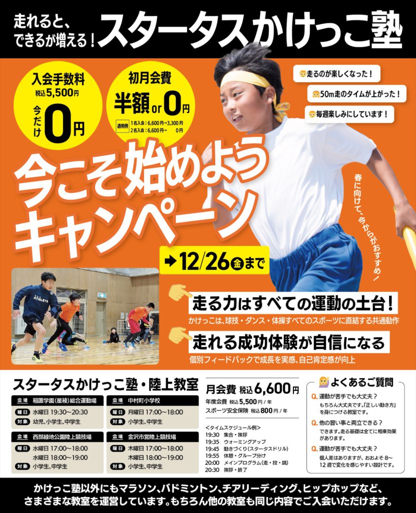 2/28締切!かけっこ塾「今こそ始めようキャンペーン」