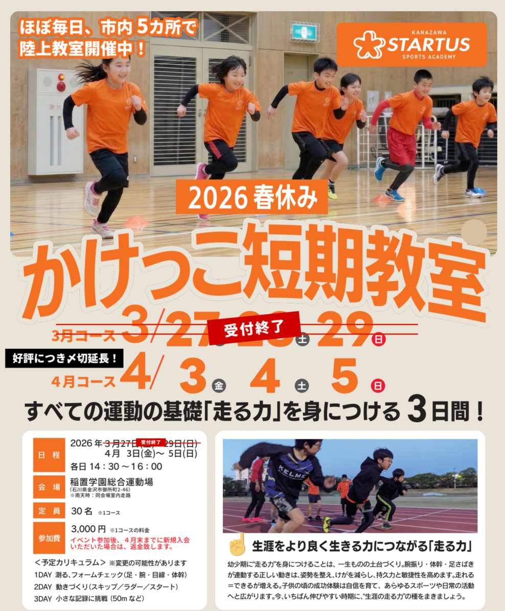 この度は、夏休み特別教室「短期かけっこ教室」にお申込みありがとうございます。